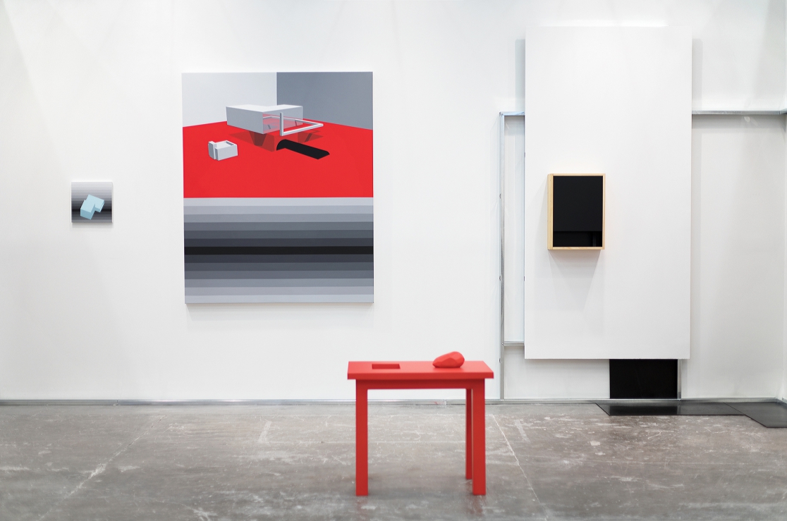 La pintura de Alberto Lezaca en los últimos años ha estado dedicada a representar esculturas e instalaciones que, sin haber sido llevadas a cabo, reconocemos como de su autoría. A su vez, sus esculturas e instalaciones, sin haber sido ejecutadas, nos resultan familiares a través de su pintura. Existe en su práctica un continuo proceso de proyección, en el sentido arquitectónico de imaginar lo que puede ser a través de la representación y una constante oscilación entre la pintura y la escultura. Del ejercicio continuo de imaginarse un medio a través de otro, resulta la compenetración de ambas técnicas, la exploración del medio y la producción artística. Tomado del catálogo ArtBo 2018, Proyectos individuales “Los pensamientos se vuelven cosas”, bajo la curaduría de Emiliano Valdés.